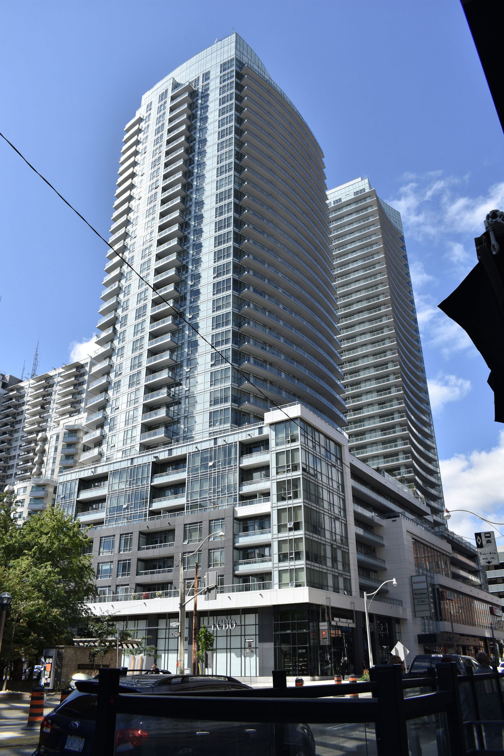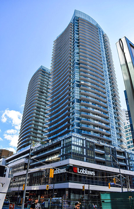 This residential development includes two condominium towers, at 33 and 36 storeys, with a seven-storey podium featuring retail space, recreational facilities and condominium suites. The retail space features a two-storey Loblaws store on the second level along with miscellaneous stores on the ground floor.